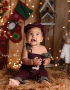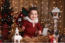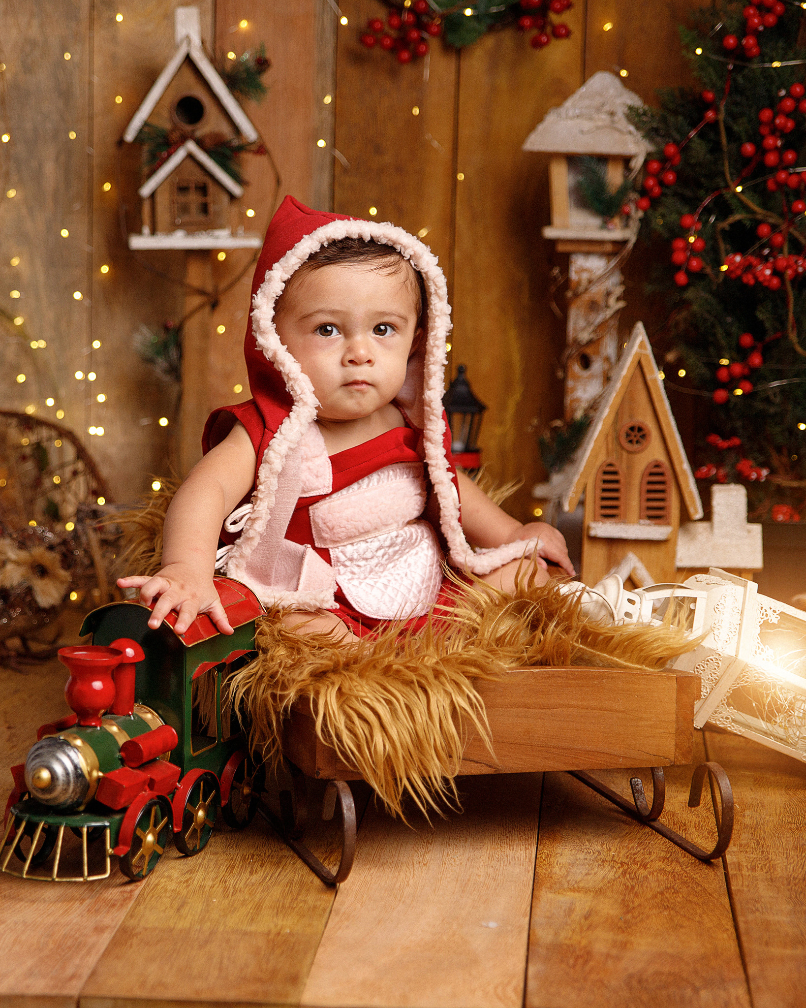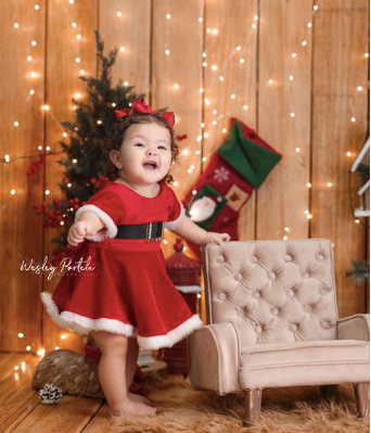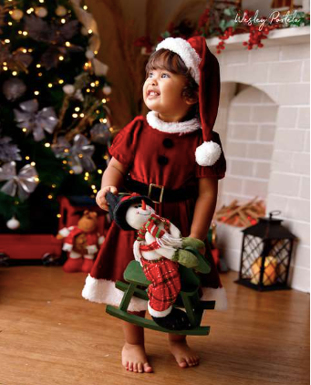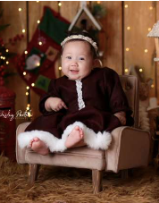 Vestido de Veludo + Gorro com Bolinha de Pelinho
